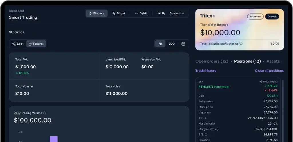 その代わりに、ユーザーはアカウントが利益の 30% をTitanとシェアすることになります。